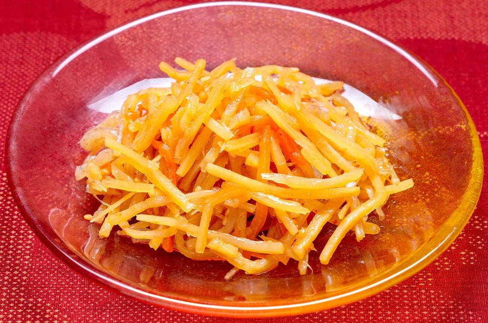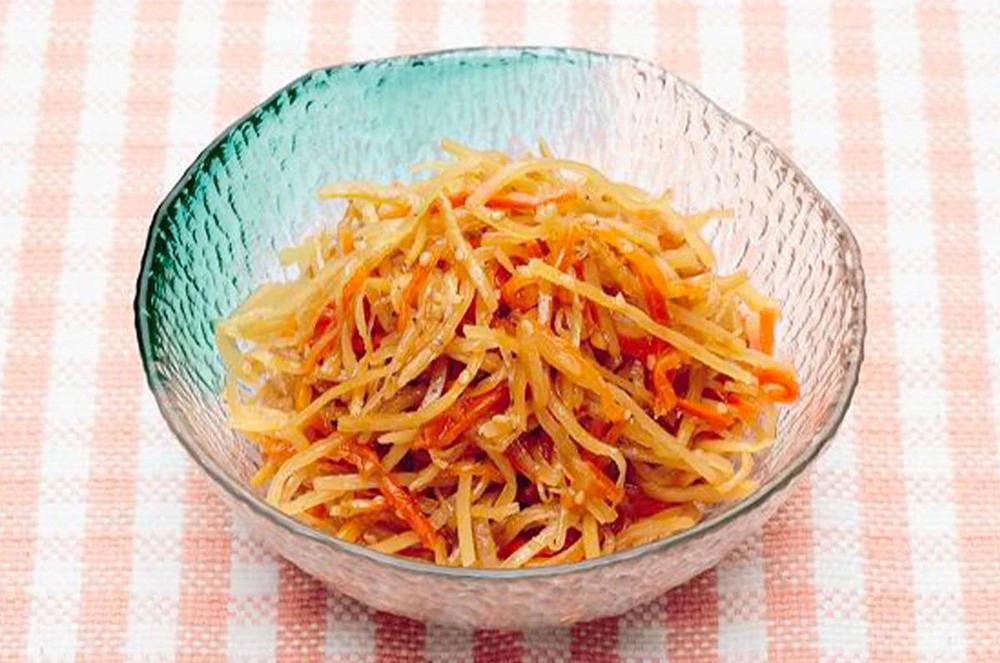 ごぼうのシャキシャキ食感と、ピリ辛の味付けが広がる一品です。