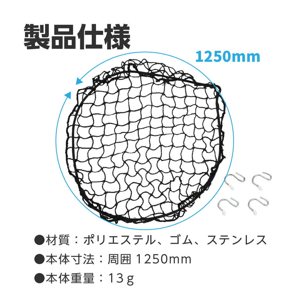 | 素材 | ポリエステル、ゴム、ステンレス ネット×1,S字フック×4 |