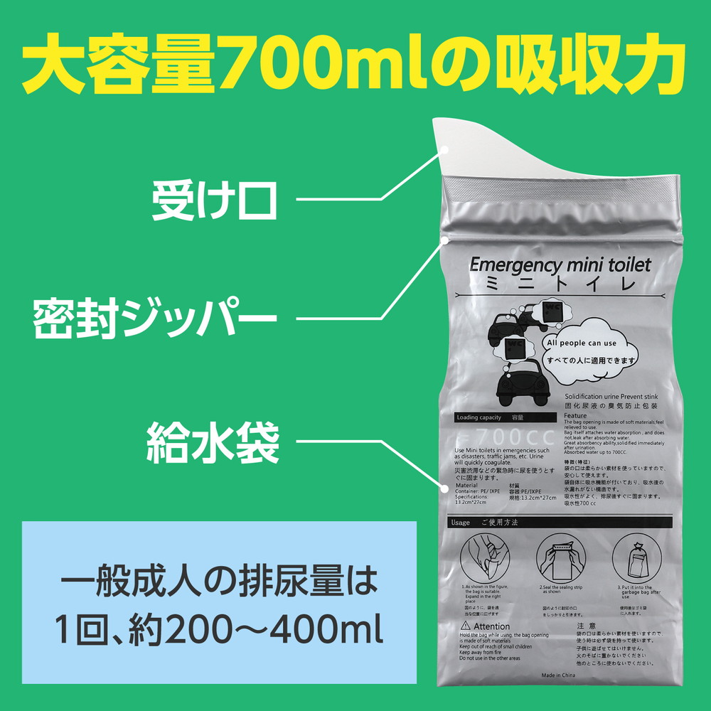 700mlの大容量!緊急時に便利な男女兼用の携帯簡易トイレ!
